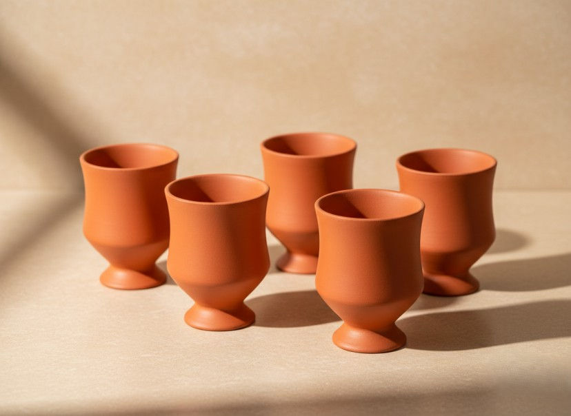 Clay Goblet Glass Set of 6 - Traditional Terracotta Pedestal Cups